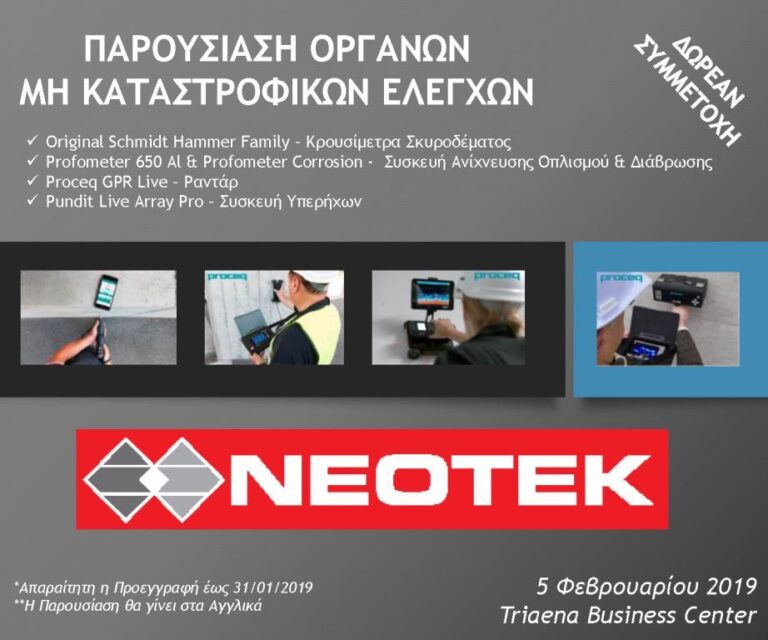 In collaboration with PROCEQ, Switzerland, NEOTEK organizes an OPEN DAY for the presentation of Non Destructive Instruments and Testing Techniques.